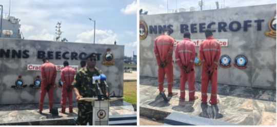The suspects were formally transferred at the BEECROFT parade ground in Lagos, following their rescue from a merchant vessel, MT Anatolia, in an operation underscoring inter-agency cooperation.